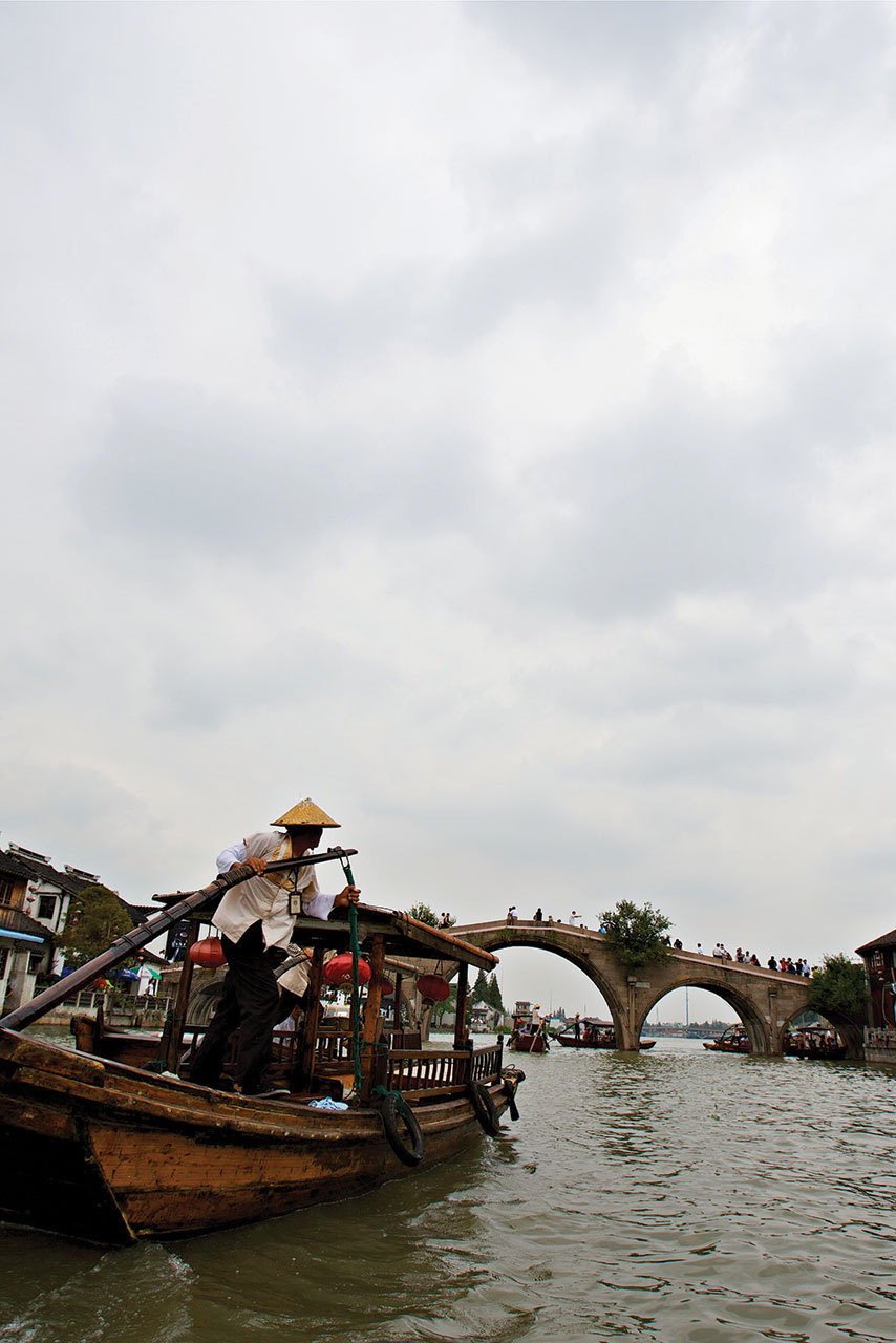 Situata a est del lago Dianshan, è il punto di congiunzione fra le province del Jiangsu e del Zhejiang e Shanghai. In passato esisteva un modo di dire che diceva “che tre jing non fanno un solo jiao” dove i Jing stavano a indicare le cittadine di Zhujing e Fenjing nel distretto di Jinshan e Sijing nel distretto di Songjiang, mentre il jiao indicava proprio Zhujiajiao. Nella contea sono presenti 9 antiche vie lungo i rami del fiume Caogang, che formano un grande ventaglio aperto. Le antiche stradine e i vicoli sono edificati sull’acqua, e le residenze dai muri bianchi e dai tetti ricoperti di tegole grigie sono semplici e immersi nella pace. Le drogherie, i negozietti, i templi e giardini, le residenze e le abitazioni, insieme alle imbarcazioni scure e ai ponticelli che attraversano i canali, attraggono i visitatori che hanno la sensazione di immergersi in un mondo da sogno dell’antica Cina a sud del fiume Yangtze (Azzurro).