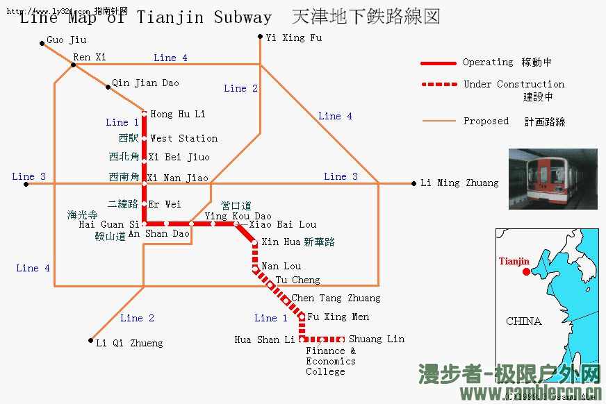 La metropolitana ha una lunghezza di 7,4 km, parte dall’incrocio delle vie Nanjing e Xinhua alla stazione ferroviaria Ovest di Tianjin. Si divide in 8 fermate. L’orario d’apertura è dalle 5:00 del mattino alle 10:30 della sera